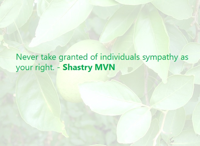 Never take granted of individuals sympathy as your right. - Shastry MVN